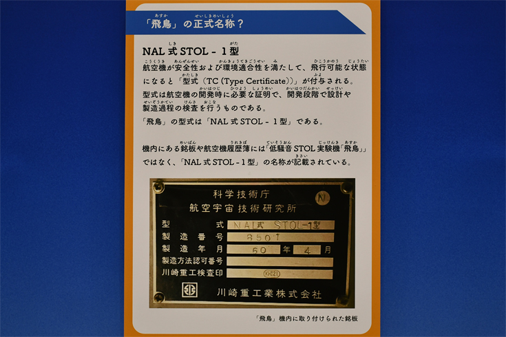 | 飛鳥の様々な資料や機体から取り外された部品などが展示されていました。 実験を終了した飛鳥は、解体などの幾つかの選択肢が残されていましたが、後生に保存されることになりました。 飛鳥も重要航空遺産に認定されています。 |