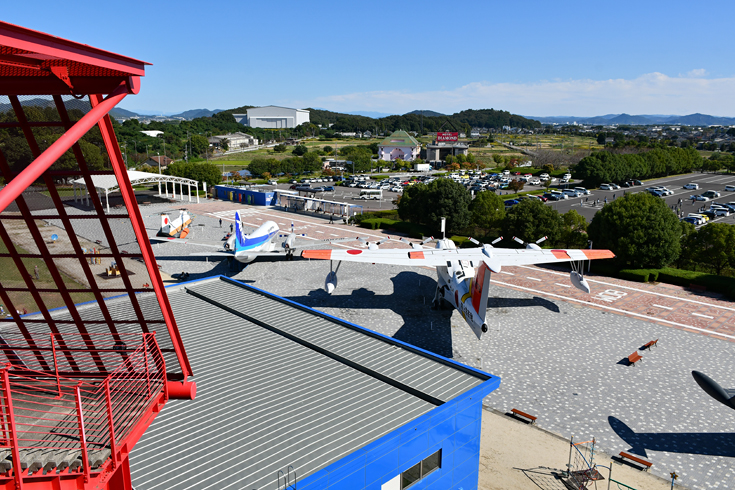 展望デッキから屋外展示機を見た様子です。 岐阜基地の方向は森林が広がっていて、基地の様子は見えません。 |